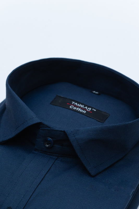 Navy Blue Color Mercerised Cotton Shirt For Men's