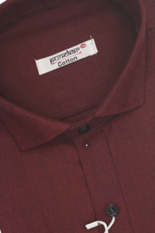 Cotton Tanmay Satin Maroon Color Full Sleeves Formal Shirt for Men's